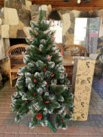 Ялинка Кармен 1.80 м з червоними шишками і перлинами (калиною) ПВХШтучна ялинка “Кармен” з червоними натуральними шишками та перлами, ягодами калиною