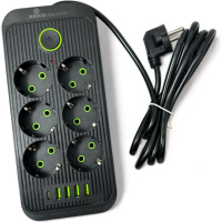 Мережевий фільтр живлення XoKo XК-SP6-4-1-BKКількість розеток - 6, 2 x USB (type C), 4 x USB (type A), Довжина кабелю - 2 м