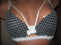 Бюстгальтер без кісточок з портупеєю чорний в клітинку чашка АБюстгальтер з дуже цікавим дизайном, чорного кольору в клітку.