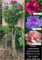 Гібіскус переплетений триколірний махровий №3Загальна висота дерева 175 см, висота плетеного стовбура 122 см.