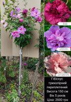 Гібіскус переплетений триколірний махровий №36Загальна висота дерева 150 см, висота плетеного стовбура 98 см.