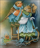 Схема для вышивки «Мышка вяжет шарф»Схема под частичную зашивку картины чешским бисером 24x29 см на габардине. Бисером не укомплектована.