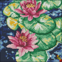 Схема для вышивки «Изумрудные лотосы»Схема под полную зашивку картины чешским бисером 25x25 см на габардине. Бисером не укомплектована.