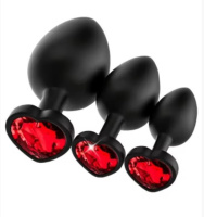 Анальная пробка силиконовая черная сердце FoxyRocksy