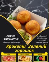 Соковита начинка із зеленого горошку, яєць, молока, борошна, спецій, згорнута в кульку, в хрумкій паніровці. Смакуйте з нами.