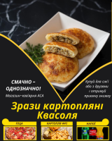 Смажена соковита начинка з квасолі, цибулі і спецій, дбайливо загорнута в оболонку із картопляного тіста, обсмажена до золотистого кольору.