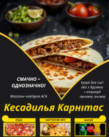 Соковита начинка з тушкованою свининою, сиром, цибулею, соусом Гуакамоле, дбайливо загорнуті в тортилью, обсмажену з начинкою на грилі. Смакуй з нами
