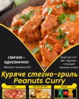 Куряче стегно-гриль Peanuts CurryСоковите куряче стегно, замариноване з спеціями, та запечене до готовності на грилі – однозначно викличе у вас задоволення.