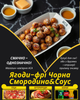 Ягоди-фрі Чорна Смородина&СоусСоковиті ягоди Чорної Смородини, засмажені у фритюрі до золотистого кольору з усіх боків, разом із смачнючим соусом на вибір.