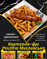 Хрумкі апетитні брусочки з добірної картоплі, засмажені до золотистого кольору, з мисливськими ковбасками, доповненням та соусом. Смакуй з нами.