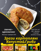 Зрази картопляні Капуста&ГрибиСоковита начинка з тушкованої капусти і грибів, цибулі і спецій, дбайливо загорнута в картопляне тісто, обсмажена до золотистого кольору.