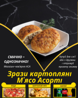Соковита начинка з тушкованим м'ясом асорті, цибулькою, морквою, спеціями і зеленню в класичному млинці, обсмаженому з обидвох боків у яєчному клярі.