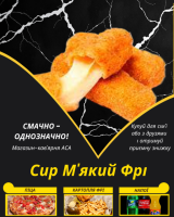 Соковиті палички м'якого сиру, покриті тонким шаром кляру і паніровки, обсмажені у фритюрі до золотистого кольору, із свіжою зеленню та соусом. Нямка