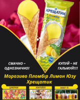 Морозиво Пломбір Лимон Юзу ХрещатикМорозиво Пломбір Лимон Юзу в ріжку Хрещатик смакує любителям пломбіру з лимоном. В ріжку! Ніжне і смачне.