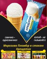 Морозиво Пломбір в стакані ХрещатикМорозиво Пломбір в стакані Хрещатик смакує любителям пломбіру у вафельному стаканчику.