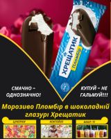 Морозиво Пломбір в шоколадній глазурі ХрещатикМорозиво Пломбір в шоколадній глазурі Хрещатик смакує любителям густого пломбіру з шоколадною глазур'ю.