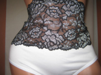 Красиві жіночі трусики GavinkaiQin бамбук з мереживом високі розміри 2XL (52) і 3XL (54) біліГарні жіночі трусики батальні GavinkaiQin, тканина бамбукова, колір — білий, спереду чорно-біла мереживна вставка.
