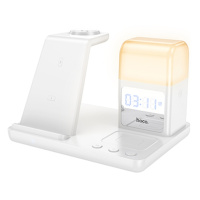 Беспроводное зарядное устройство Hoco CQ9 3в1 с часами white