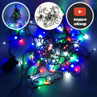 Гирлянда светодиодная диоды разноцветные, провод черный, 7м