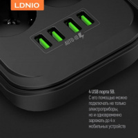 Сетевой фильтр удлинитель Ldnio 6403 6 розеток с 4 USB 2м с защитой с заземлением Ldnio 2500W 10A Черный - Этот сетевой фильтр с защитой от...