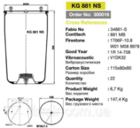 Пневморессора подвески BPW 300x525 без стакана 881MB/O