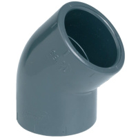 Коліно клеєве 45° Effast RDRGYD2500 з непластифікованого полівінілхлориду PVC-U. Виробництво Італія.