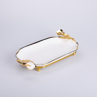 Керамическая фруктовница на подставке 26×15×3.5 см Белая с золотом