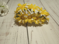 Ромашки на ніжці,10 шт в пучку. Колір: Жовто-білий. Розмір: 3 см