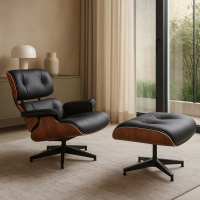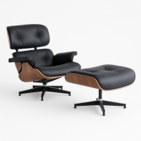Крісло Релакс з отоманкою, чорна шкіра, колір дерева палісандр